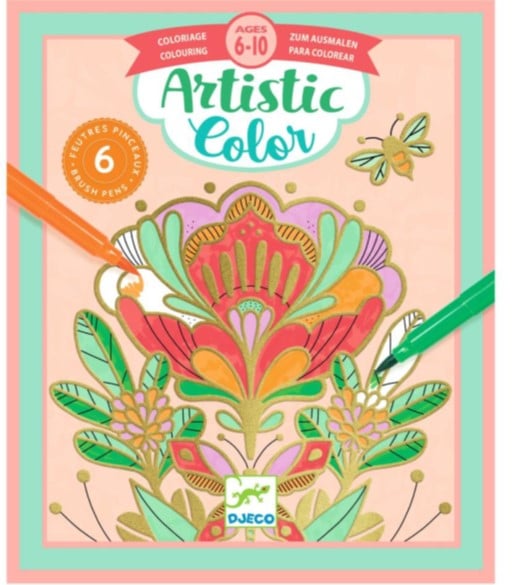 Βάλτε χρώμα στα λουλούδια και δείτε τα να μεταμορφώνονται και να ανθίζουν μέσα από την σειρά Artistic Color της Djeco. Στην συσκευασία θα βρείτε τέσσερις χοντρές κάρτες προ εκτυπωμένων σχεδίων με περίτεχνα μοτίβα λουλουδιών και έξι μαρκαδόρους με μαλακή μύτη πινέλου σε διαφορετικά χρώματα για να τις χρωματίσετε. Τα προ εκτυπωμένα σημεία στις κάρτες έχουν φτιαχτεί με μια χρυσή πάστα με μεταλλικό εφέ που εκτός από το εντυπωσιακό αποτέλεσμα που προσφέρει, κάνει το περίγραμμα ανάγλυφο ώστε να βοηθάει το χεράκι να ακολουθεί τις γραμμές και να μην ξεφεύγει ο μαρκαδόρος από το περιθώριο.