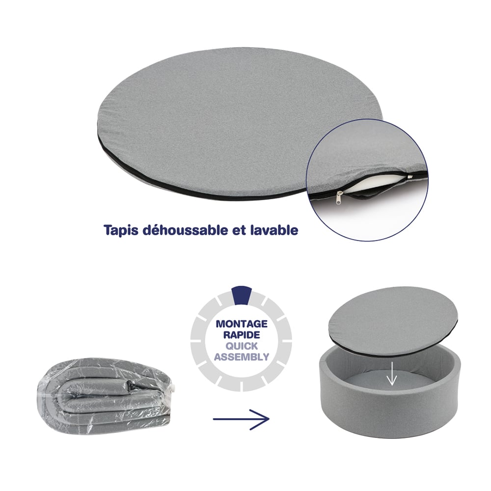 Με μαλακά μπαλάκια και κομψό γκρι χρώμα, ταιριάζει τέλεια σε κάθε παιδικό δωμάτιο, προσφέροντας ασφαλές και απολαυστικό παιχνίδι.