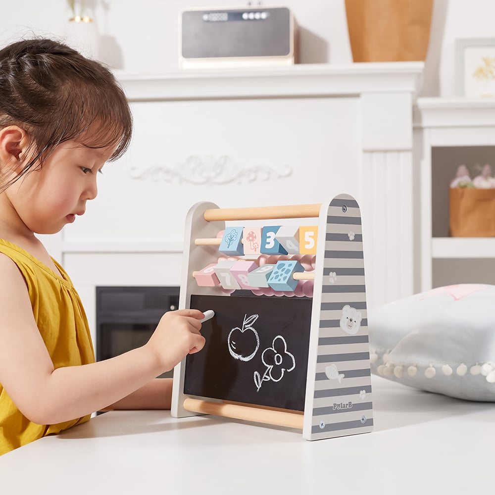Αυτό το 3 σε 1 πολυλειτουργικό επιτραπέζιο πινακάκι περιλαμβάνει ένα αριθμητήριο – άβακα, ένα πλαίσιο εκμάθησης αριθμών και έναν μαυροπίνακα με ένα κουτί κιμωλίες για ατελείωτη ζωγραφική και υπολογισμούς!