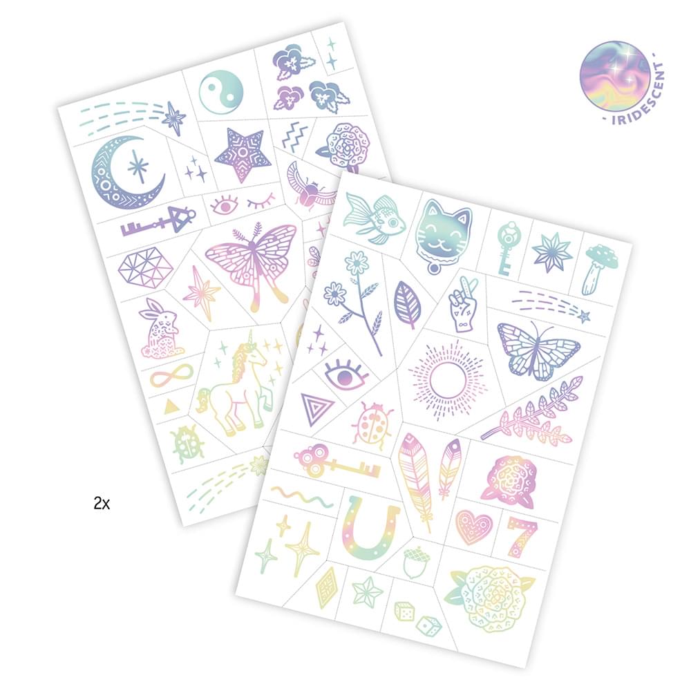 Τα τατουάζ της εταιρείας Djeco θα ενθουσιάσουν τους μικρούς μας φίλους! Είναι δερματολογικά ελεγμένα και η εφαρμογή τους είναι πολύ εύκολη, απλά πιέζετε το σχέδιο της επιλογής σας στο δέρμα χρησιμοποιώντας νερό. Κατάλληλο για ηλικίες από 3 ετών και άνω. Περιέχονται δύο κάρτες με διαφορετικά σχέδια στην κάθε μία. Διαστάσεις 21×14 εκ.
