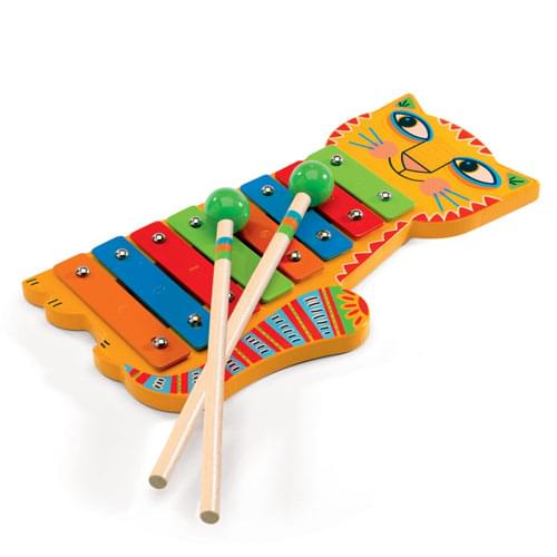 Το μεταλλόφωνο γατούλα της εταιρίας Djeco οδηγεί τους μικρούς φίλους της μουσικής σε έναν κόσμο γεμάτο νότες! Κατασκευασμένο από μασίφ ξύλο καουτσουκόδεντρου και χρώματα μη τοξικά. Κατάλληλο από 3 ετών και άνω.