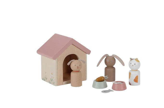 Ζωντανέψτε το κουκλόσπιτο Little Dutch με το σετ παιχνιδιού με κατοικίδια! Καλωσορίστε έναν καλοσυνάτο σκύλο, ένα χαριτωμένο λαγουδάκι και μια υπέροχη γατούλα. Δώστε τους ένα άνετο κρεβάτι, μπολ με φαγητό και παιχνίδια για να παίζουν. Δημιουργήστε αξέχαστες περιπέτειες και όμορφες στιγμές με αυτά τα μαγευτικά κατοικίδια και τα ασορτί αξεσουάρ τους. Το κουκλόσπιτο γίνεται ένα πραγματικό ζωικό βασίλειο!